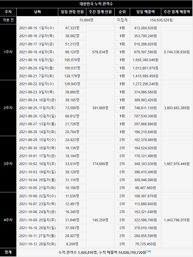 카테고리 없음 보이스 확인 by .영화 정보. 2023. 9. 11. 반응형 영화 보이스 영화 보이스 제작비는 약 90억 원이 들었습니다.영화 보이스 손익분기점은 약 179만 명입니다.영화 보이스 총관람객은 약 140만 명입니다. (1,426,816명) 영화 보이스 주차별 관람객 표입니다. 그림을 클릭하면 확대해서 볼 수 있습니다. 클릭하면 확대해서 볼 수 있습니다. 극 중 미연 역의 원진아 클릭하면 확대해서 볼 수 있습니다. 클릭하면 확대해서 볼 수 있습니다. 극 중 깡칠 역의 이주영 클릭하면 확대해서 볼 수 있습니다. 클릭하면 확대해서 볼 수 있습니다. 클릭하면 확대해서 볼 수 있습니다. 반응형 공유하기 게시글 관리 .영화 정보. 저작자표시 비영리 변경금지 (새창열림)